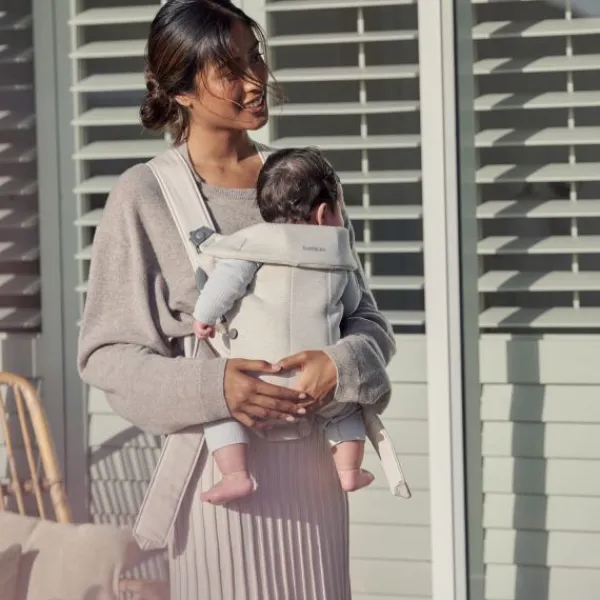 De draagzak is heel eenvoudig om te doen. Het voorste gedeelte van de draagzak is makkelijk los te maken om je kindje eruit te halen, bijvoorbeeld wanneer je kindje in slaap gevallen is. Vanaf 5 maanden is het ook mogelijk om je kindje met het gezicht van je af te dragen in de BabyBjörn Mini 3D Jersey draagzak.