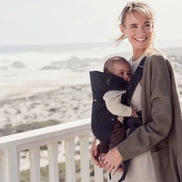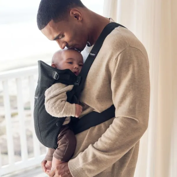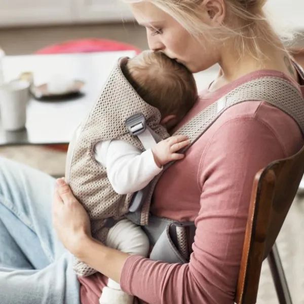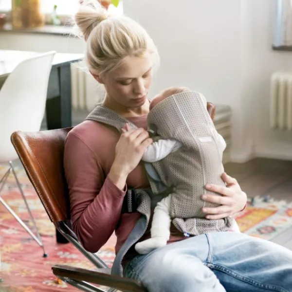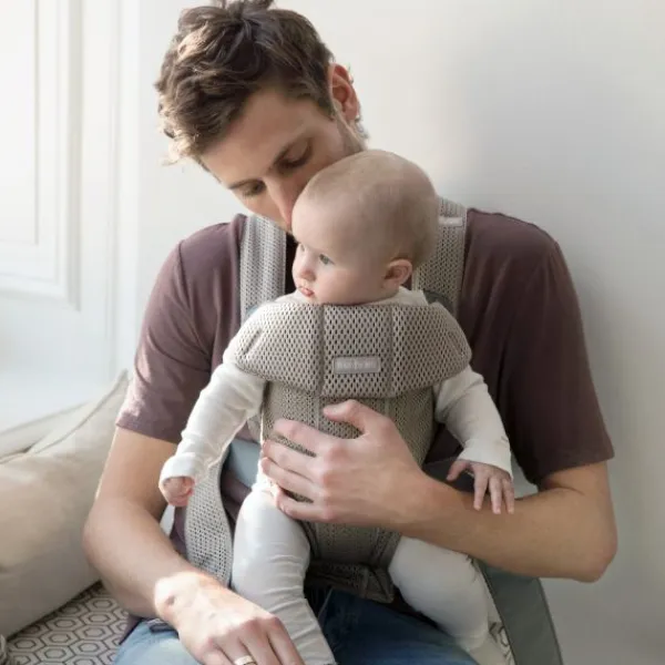 De draagzak is heel eenvoudig om te doen. Het voorste gedeelte van de draagzak is makkelijk los te maken om je kindje eruit te halen, bijvoorbeeld wanneer je kindje in slaap gevallen is. Vanaf 5 maanden is het ook mogelijk om je kindje met het gezicht van je af te dragen in de BabyBjörn Mini 3D Mesh draagzak.