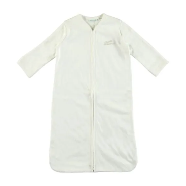 De slaapzak is niet gevoerd en uni van kleur met op de borst “Sweet dreams”.
