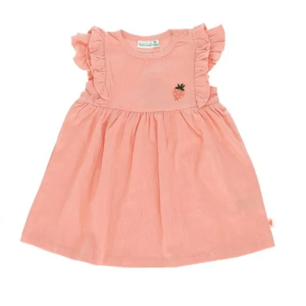De Babylook Strawberries Jurk – Maat 50 – Crepe Coral Almond is een heerlijke zomerjurk voor de allerkleinsten. De frisse Coral Almond kleur en het subtiele aardbei-borduursel op de borst zorgen voor een lieve, zomerse uitstraling. De zachte crinkle stof en speelse ruches op de schouders maken dit jurkje helemaal af.