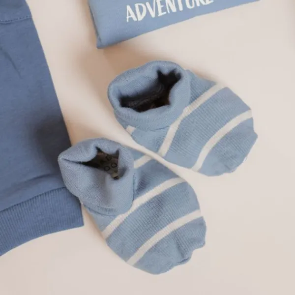 Babylook Striped Rib Slofjes – Newborn – Faded Denim