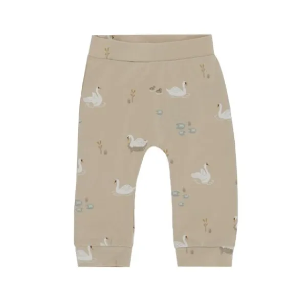 Het broekje is gemaakt van een zachte, ademende katoenmix die prettig aanvoelt op de gevoelige huid van je kindje. De elastische tailleband zorgt voor een comfortabele pasvorm die goed blijft zitten zonder te knellen, terwijl de aansluitende boordjes bij de pijpen zorgen voor extra draagcomfort en een nette afwerking. Dankzij het all‑over zwanenpatroon krijgt het broekje een speelse, lieve uitstraling — ideaal voor de eerste dagen en weken.