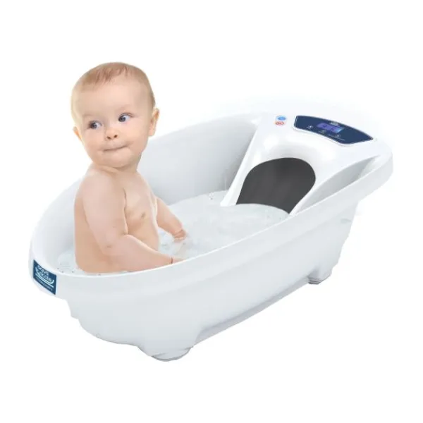 Met dit badje van het merk BabyPatent kunnen ouders niet alleen hun baby wassen, maar ook wegen! Het badje heeft namelijk een geïntegreerde weegschaal met LCD-schermpje waarmee ouders het gewicht van hun kindje de eerste maanden goed kunnen opvolgen. Met de ingebouwde thermometer zie je dan weer live de temperatuur van het water. Je kan het badje los gebruiken in de douche of in het bad.