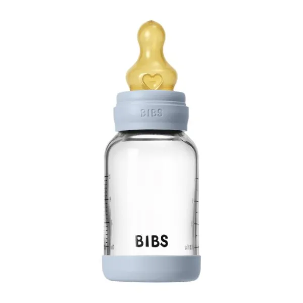 BIBS Fles – Slow Flow – 120 ml – Glas/Latex – Baby Blue