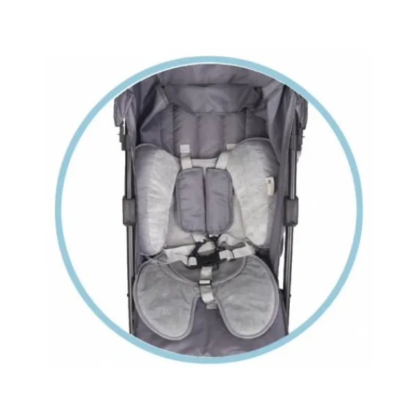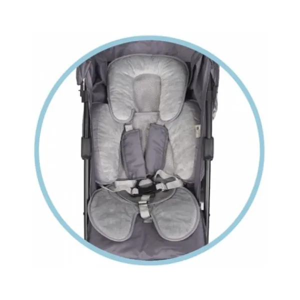 Het kussen bestaat uit 3 delen die ook apart gebruikt kunnen worden. De hoofdsteun kan aangepast worden naarmate je baby groeit. De lucht doorlatende stoffen bieden extra comfort en veiligheid in alle seizoenen. Het kussen beschikt tevens over openingen voor veiligheidsgordels en het onderste deel van het kussen is waterdicht om bescherming te kunnen bieden tegen luierongelukjes.