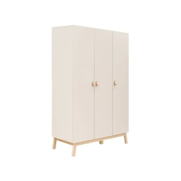 De Bopita 3-Deurskast – Lines – Dune / Naturel is een elegante en ruime opbergoplossing voor de kinderkamer. Met zijn stijlvolle combinatie van warme dune-tinten en naturel beuken accenten past deze kast moeiteloos in elk modern interieur. De schuingeplaatste poten geven het geheel een luchtige uitstraling, terwijl de horizontale groeven en leren handgrepen zorgen voor een verfijnde afwerking.