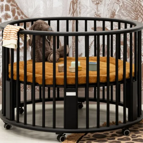 De Bopita Rondo Box – Mat Zwart is een moderne en stijlvolle babybox met een uniek rond design. De diepe, matzwarte kleur geeft een stoere uitstraling aan zowel de babykamer als je woonkamer. Dankzij de meegeleverde wielen is de box eenvoudig te verplaatsen, zodat je je kindje altijd dichtbij kunt houden – waar je ook bent in huis.