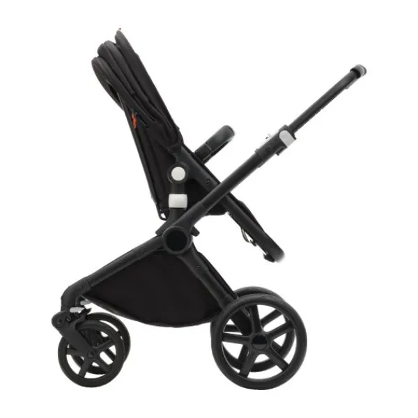 Ruime wieg met een zacht ondersteunend matras voor comfortabele wandelingen. Grote bagagemand onder de stoel met een capaciteit tot 10 kg.