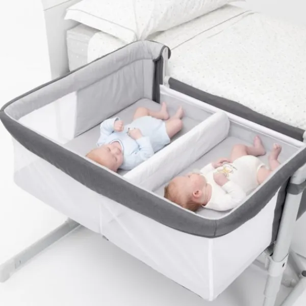De Chicco Next2Me Twins heeft een modern en neutraal design in de kleur Magnet Grey, passend in elk interieur. De wieg is licht van gewicht en eenvoudig te monteren, demonteren en verplaatsen. Een ideale combinatie van comfort, veiligheid en gebruiksgemak voor jonge gezinnen met een tweeling.