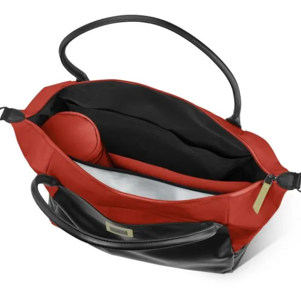 De Cybex Platinum Shopper Bag wordt geleverd met een verwijderbare geïsoleerde flessenhouder, een aankleedkussen en een apart gedeelte om natte spullen in op te bergen.