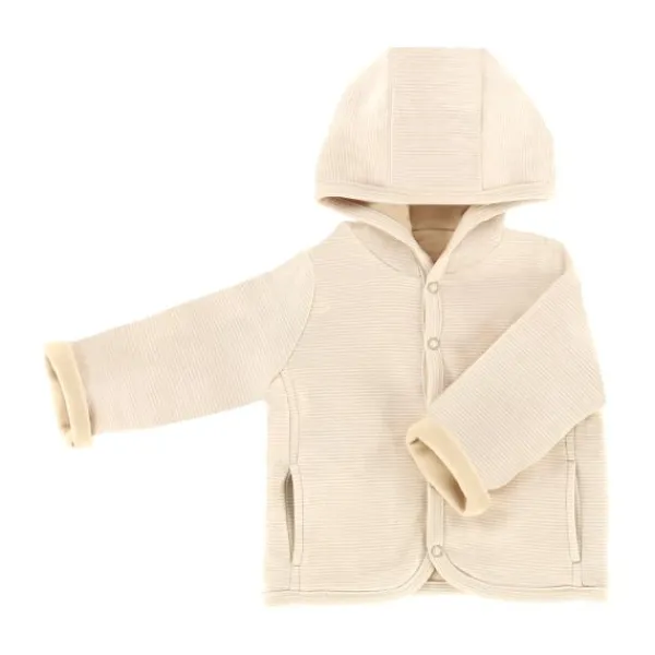 Het DAY Jasje Met Capuchon in cappuccino is een schattige en comfortabele must-have voor je baby. Het zachte, gestreepte design en de warme capuchon maken het perfect voor elke dag. Dankzij de drukknoopsluiting is het jasje makkelijk aan en uit te trekken.