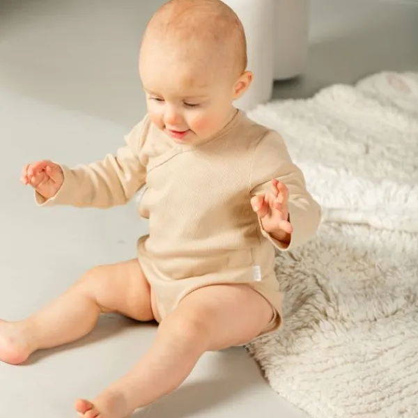 De DAY Overslagromper Lange Mouw Rib – Mt. 74/80 – Cappuccino biedt optimaal comfort en warmte voor je kleintje. Dankzij het zachte, ademende en rekbare materiaal voelt de romper heerlijk aan op de huid. Het overslagmodel met handige drukknoopjes maakt het aan- en uittrekken extra eenvoudig, ideaal voor pasgeborenen. De neutrale kleur zorgt ervoor dat deze romper perfect te combineren is met andere babykleertjes. Deze romper is gemaakt van 95% biologisch katoen en 5% elastaan, wat zorgt voor een comfortabele pasvorm en voldoende bewegingsvrijheid. De ribstructuur geeft de romper een stijlvolle uitstraling en extra elasticiteit. Door de lange mouwen is hij ideaal voor elk seizoen, en biedt hij net dat beetje extra warmte voor je baby.