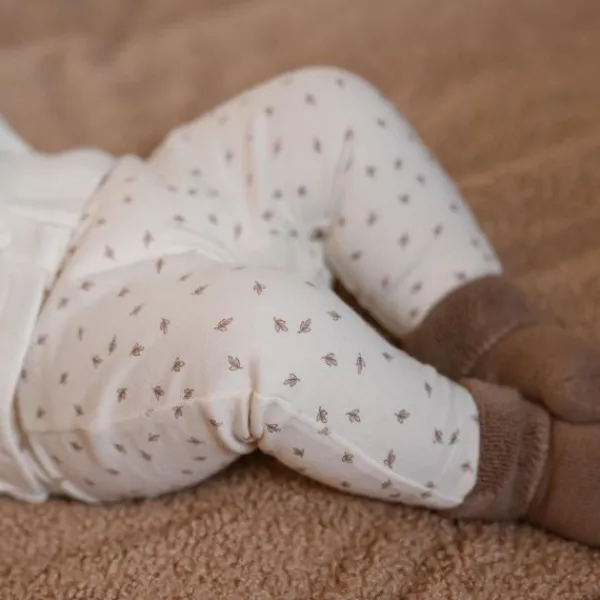 Dit comfortabele broekje van het merk Dirkje is offwhite van kleur en heeft een leuke print van blaadjes. De broek heeft een hoge taille. Leuk en lekker comfortabel!