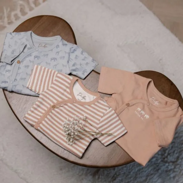 Deze super leuke 3-pack rompers zijn van het merk Dirkje. Dit setje bestaat uit 3 rompers met verschillende printjes. De rompertjes hebben korte mouwen.