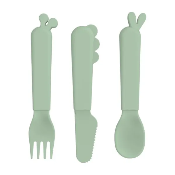 Met het Done by Deer Deer Friends Kiddish Bestek Green leert je kindje op een leuke en veilige manier zelfstandig eten. De set bestaat uit een vork, lepel en mes die speciaal zijn ontworpen voor kleine handjes, zodat ze gemakkelijk vast te houden zijn. Dankzij de afgeronde vormen is het bestek niet alleen comfortabel, maar ook veilig in gebruik voor jonge kinderen.