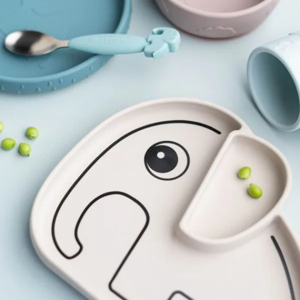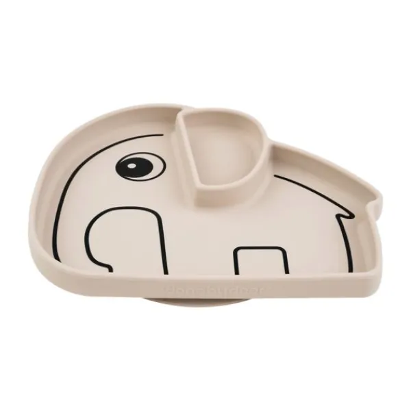 Met het **Done By Deer Elphee Stick&Stay Bord – Sand** wordt etenstijd een stuk eenvoudiger en leuker! Dit slimme siliconen bord blijft stevig op de tafel of het kinderstoeltje plakken, zodat je kleintje ongestoord kan genieten van zijn maaltijd zonder dat het bord verschuift. Dankzij de handige vakken in de vorm van Elphee de olifant, kun je verschillende soorten eten gescheiden serveren.