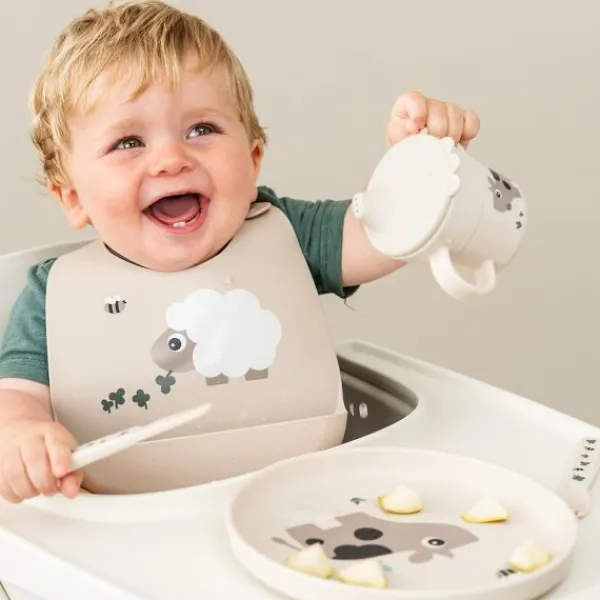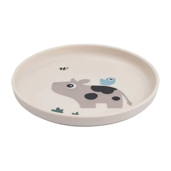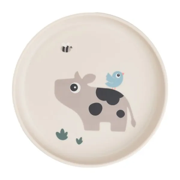 Maak etenstijd extra leuk met het **Done By Deer Tiny Farm Bord – Sand**! Dit schattige kinderbord met een vrolijke koe en een klein vogeltje helpt je kindje zelfstandig te leren eten. Dankzij de opstaande randen blijft het eten beter op het bord liggen, wat ideaal is voor kleine handjes die nog oefenen met bestek.