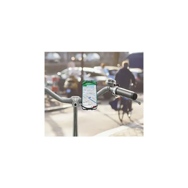 De houder bevestig je eenvoudig met een riem. De silicone zorgt voor goede grip, waardoor je telefoon stevig vast zit zonder krassen.