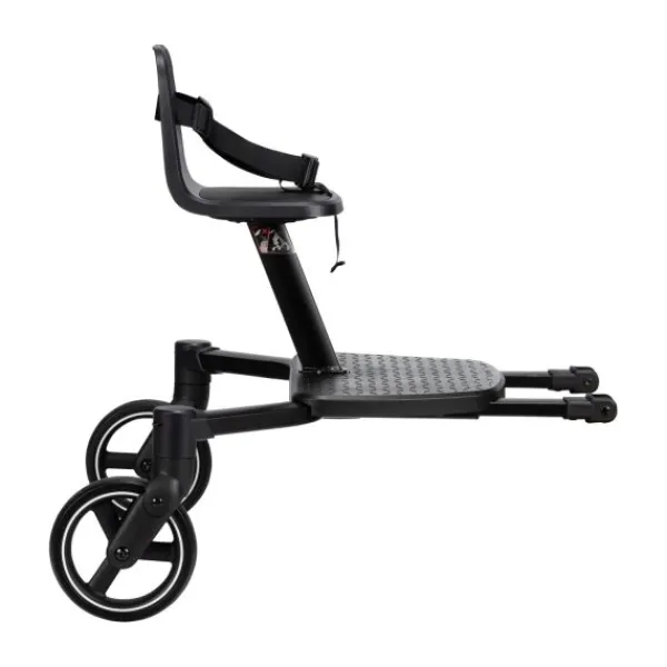 De zitting is voorzien van een veiligheidstuigje waardoor je kindje altijd veilig meelift tijdens de wandeling en niet van het plankje af kan stappen.
