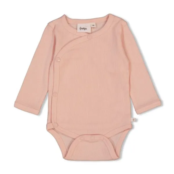 Deze mooie overslag romper is van het merk Feetje. Deze romper is geheel roze van kleur met handige drukknoopjes om je kindje gemakkelijk aan en uit te kleden.