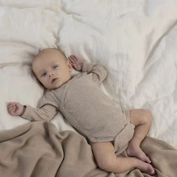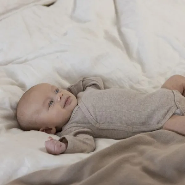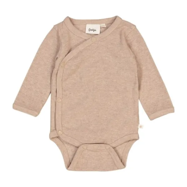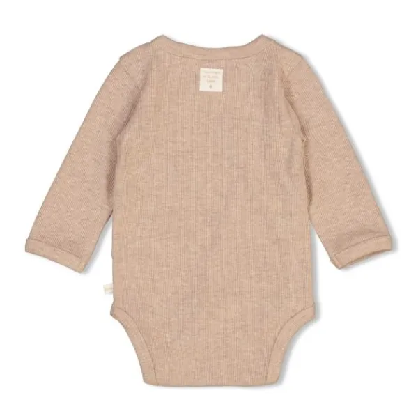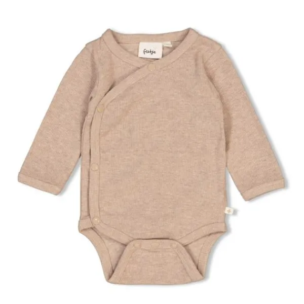 Deze mooie overslag romper is van het merk Feetje. Deze romper in de kleur taupe melange heeft handige drukknoopjes om je kindje gemakkelijk aan en uit te kleden.