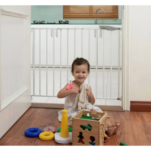 Het Fenss wit metaal Oslo traphek is geheel wit van kleur en biedt optimale veiligheid voor je kindje en een gerust hart voor jezelf.