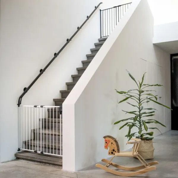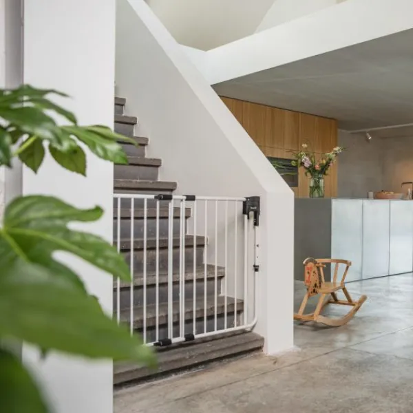 Het Fenss Safetydoor wit metalen traphek is geheel van wit metaal en biedt optimale veiligheid voor je kindje en een gerust hart voor jezelf.