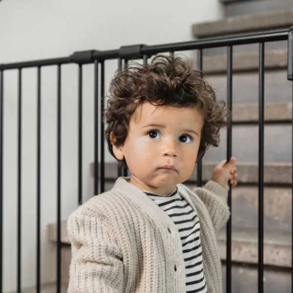 Het traphekje is verstelbaar van 75.5 cm tot 116 cm en is traploos in te stellen waardoor deze voor bijna alle deur openingen en trappen geschikt is.