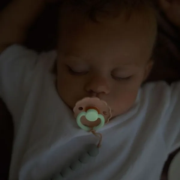 De Frigg Fopspeen Daisy Night Portobello/Croissant T1 is speciaal ontworpen voor baby’s van 0 tot 6 maanden en biedt niet alleen troost, maar ook gemak dankzij de glow-in-the-dark functie. Deze set van twee fopspenen komt in de stijlvolle kleurencombinatie Portobello en Croissant, wat zorgt voor een elegante uitstraling, zowel overdag als ’s nachts. Het charmante bloemvormige ontwerp zorgt voor een comfortabele pasvorm en geeft je kleintje de rust die het nodig heeft.