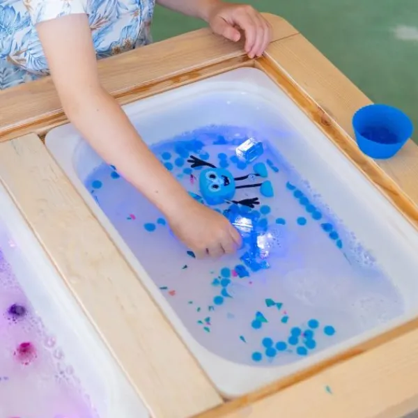 Maak kennis met Blair, je lichtgevende speelkameraadje dat badtijd, zwemsessies of zelfs het drinken uit een beker een stuk leuker maakt. Blair wordt geleverd met twee lichtgevende blokjes in de doos. Elk blokje heeft een batterij die tot 16 uur meegaat wanneer het in contact komt met water. De batterij is echter niet vervangbaar.