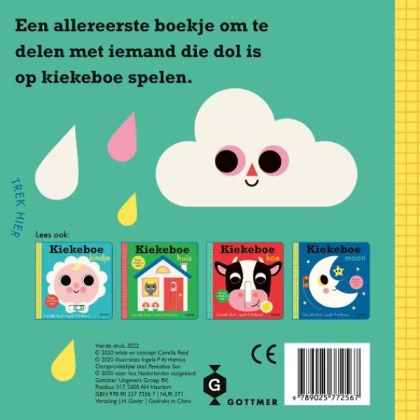 “Kiekeboe zon” is een interactief kartonboekje van Ingela P Arrhenius waarmee je kleintje de wereld kan ontdekken.