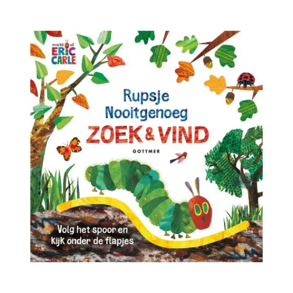 ‘Rupsje Nooitgenoeg – Zoek & vind’ is een kartonnen zoekboek waarin peuters kunnen speuren naar hun wereldberoemde, hongerige vriendje. Onderweg komen ze achter de grote flappen ook een heleboel andere bosdieren tegen. De welbekende, tijdloze illustraties van Eric Carle spatten ook in dit boek prachtig van de pagina’s. Voor kinderen vanaf 18 maanden.