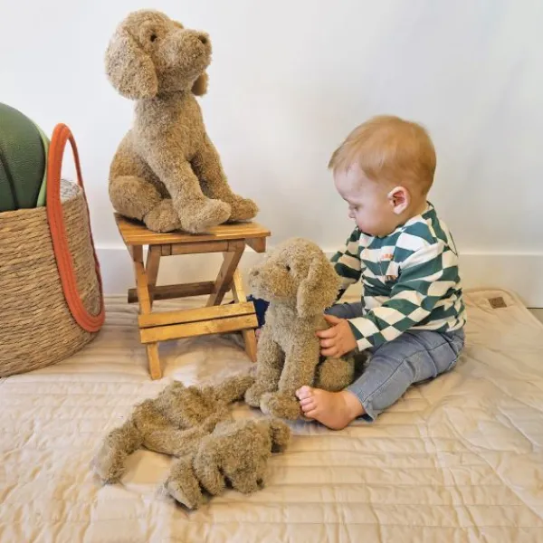 Happy Horse Hond Brownie is klein, zacht én onweerstaanbaar schattig. Met zijn pluizige vacht, lieve hangoortjes en trouwe uitstraling is hij de ideale knuffelmaat voor je kindje. Brownie zit altijd klaar voor knuffels of een nieuw avontuur! Deze zittende knuffelhond is 25 cm groot en voelt heerlijk zacht aan. De vulling is gemaakt van gerecycled polyester – een bewuste keuze voor een duurzame wereld. En dankzij zijn formaat is Brownie makkelijk mee te nemen, waar je ook naartoe gaat. Liever een maatje groter? Hond Brownie is ook verkrijgbaar in 33 cm!