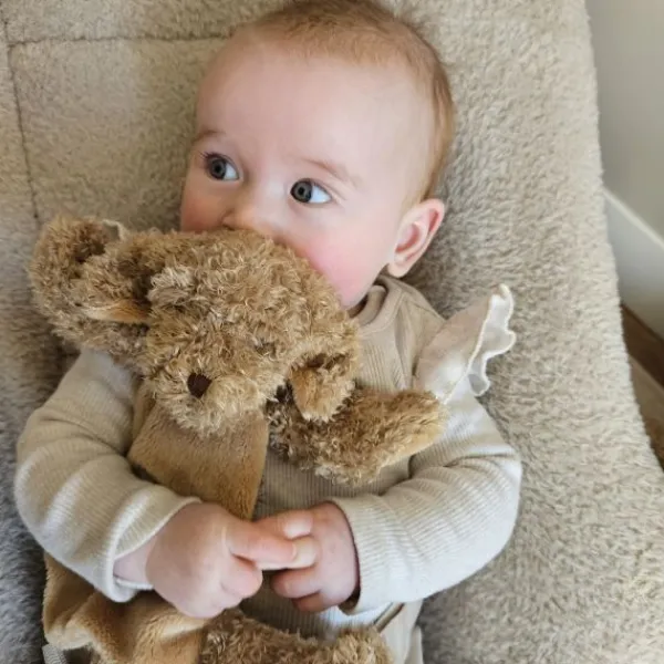 De Happy Horse Hond Brownie is een heerlijk zacht knuffeldoekje dat al snel het favoriete maatje van je kindje zal worden. Met zijn lieve oortjes en soepele pluche is hij perfect om mee te knuffelen, slapen of troosten. Dankzij het compacte formaat van 22 cm is hij ideaal voor kleine handjes én makkelijk mee te nemen onderweg. Brownie Tuttle is gemaakt van zachte materialen en gevuld met gerecycled polyester – veilig voor je kindje én beter voor de planeet. Een vertrouwd knuffeldoekje vanaf de allereerste dag.
