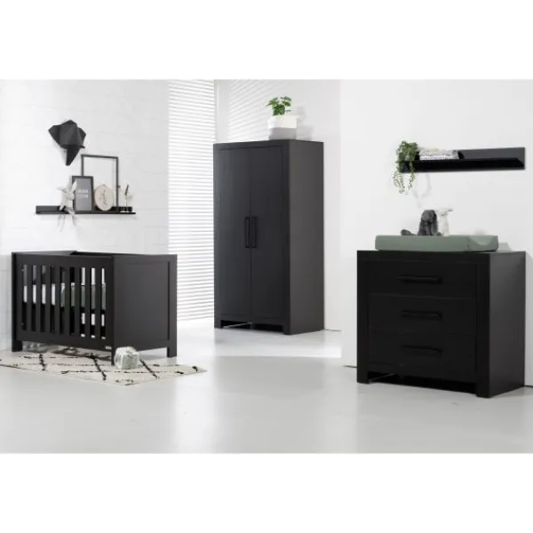 De Babykamer Kopenhagen zwart van het merk Interbaby bestaande uit: Commode, Kast, Ledikant 60×120.