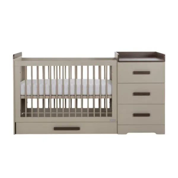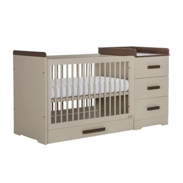 Babykamer Pebble van het merk Interbaby is gemaakt van chique clay kleurig plaatmateriaal gecombineerd met donker walnoot decor accenten. Deze babykamer past binnen elk budget! De mooie clay kleur van deze meubels zijn perfect te combineren met alle trendkleuren.
