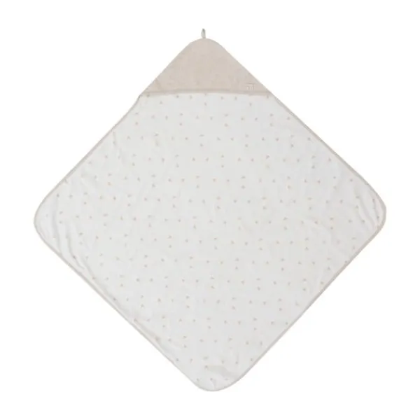 De buitenkant van de badcape is naturel en geeft een rustieke uitstraling, terwijl de binnenkant is gevoerd met zachte badstof met Harvest printje.