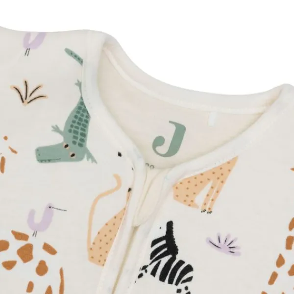 Gemaakt van hoogwaardige materialen zoals katoen en polyester, biedt deze slaapzak zowel warmte als ademend vermogen. De TOG-waarde van 3.0 zorgt ervoor dat je baby lekker warm blijft tijdens de koudere nachten, terwijl de afritsbare mouwen de flexibiliteit bieden om de slaapzak ook te gebruiken in mildere temperaturen. De Jungle Jambo print brengt een vleugje avontuur naar de babykamer en maakt het naar bed gaan een plezierige ervaring.