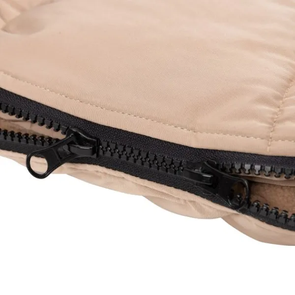 De voetenzak is gemaakt van hoogwaardige materialen en heeft een unieke “puffed” structuur in de subtiele Biscuit-kleur, wat zorgt voor een moderne uitstraling. Dankzij de ritssluiting kun je je baby snel en gemakkelijk in- en uitpakken. De binnenkant is gevoerd met zacht fleece, wat extra warmte biedt op koude dagen, terwijl de ademende buitenstof ervoor zorgt dat je kleintje niet oververhit raakt.