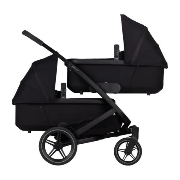 Deze twin set wordt geleverd met twee comfortabele reiswiegen met ventilerende matrasjes voor een gezonde en veilige slaaphouding. Zodra je kindjes toe zijn aan een volgende fase, vervang je de wiegen eenvoudig door de ergonomisch gevormde zitjes. Zo groeit de kinderwagen mee tot in de peuterleeftijd en biedt hij langdurig comfort voor beide kinderen.