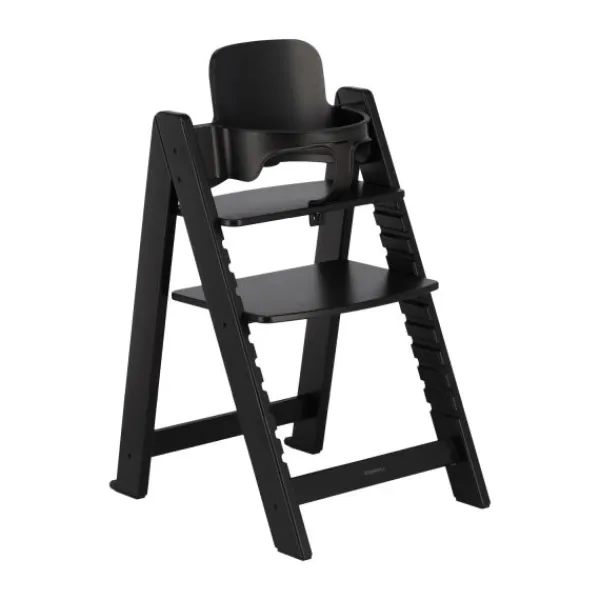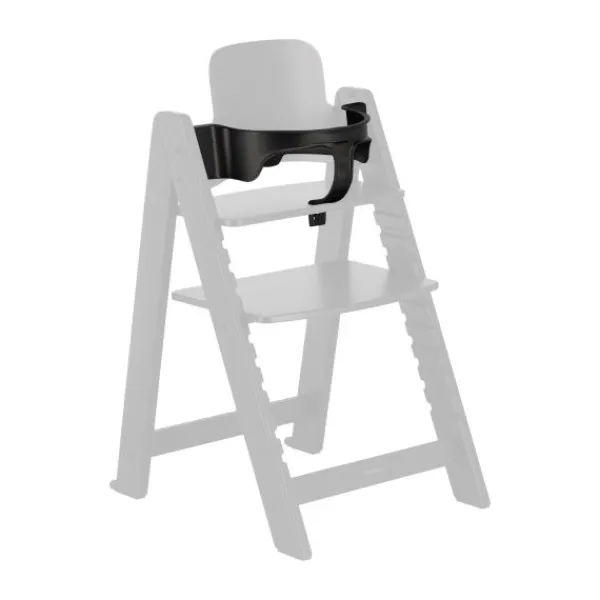 De voorbeugel is te bevestigen zonder schroeven en voorzien van een tussenbeenstuk. Met het tussenbeenstuk kan je kindje niet onderuit glijden in de stoel.