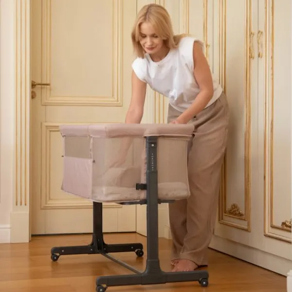 Dankzij het lichtgewicht aluminium frame is het bedje stevig en toch eenvoudig te verplaatsen. De co-sleeper is in 6 hoogtes verstelbaar en heeft een neerklapbare zijkant, zodat je het gemakkelijk aansluit op jouw bed. Extra veiligheid wordt geboden door een meegeleverde bevestigingsriem waarmee je het bedje vastzet aan het ouderlijk bed.