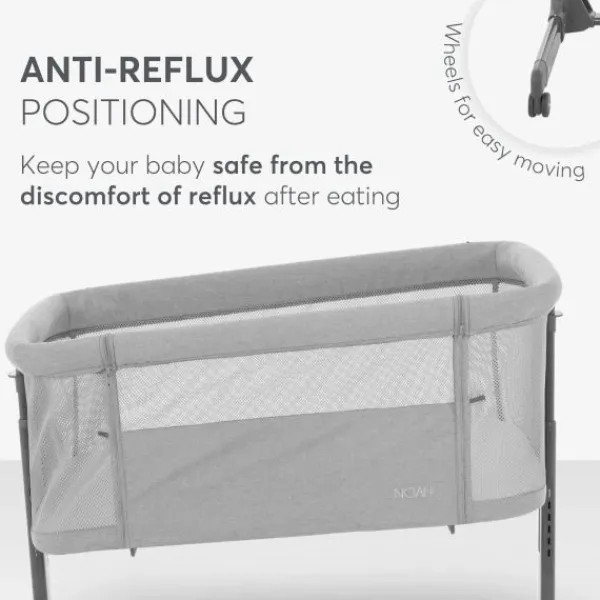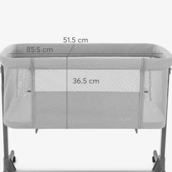 Naast comfort en gebruiksgemak is veiligheid een topprioriteit bij de Noah Co-Sleeper. De wieg is uitgerust met wielen met remmen, zodat je de wieg eenvoudig kunt verplaatsen en stevig kunt vastzetten. Een extra bevestigingsband zorgt ervoor dat de wieg veilig aan je bed kan worden bevestigd, zodat je baby altijd binnen handbereik is, zonder risico op wegrollen. Daarnaast helpt de speciale hellingspositie van de wieg om reflux te verminderen, wat bijdraagt aan een rustiger nacht voor je kleintje.