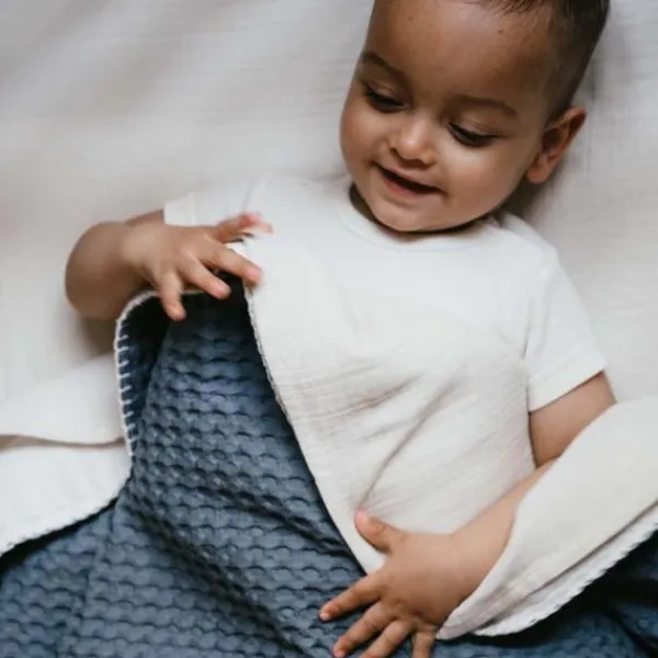 De Koeka Amsterdam Wafel Wiegdeken – Bluestone is de perfecte combinatie van stijl, comfort en functionaliteit. De buitenkant is gemaakt van luxe wafelkatoen, terwijl de binnenkant gevoerd is met heerlijk zachte cotton fleece. Dit zorgt voor een warme, ademende en comfortabele slaapomgeving voor je baby. De diepe kleur ‘Bluestone’ geeft een moderne en rustgevende uitstraling aan de babykamer.