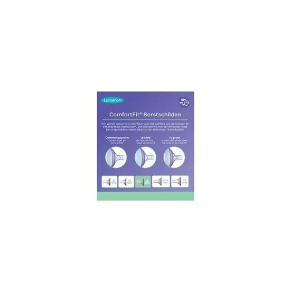 De bostschilden van Lansinoh zijn in 21mm, 28mm, 36mm. Ze zijn voorzien van standaard bostschilden van 25mm. De dubbele kolf beschikt over 2 verschillende maten: 25 mm en 30,5 mm. De schilden zijn geschikt voor zowel de elektrische als de manuele borstkolven van Lansinoh. Ze zijn gemakkelijk te gebruiken en te reinigen.