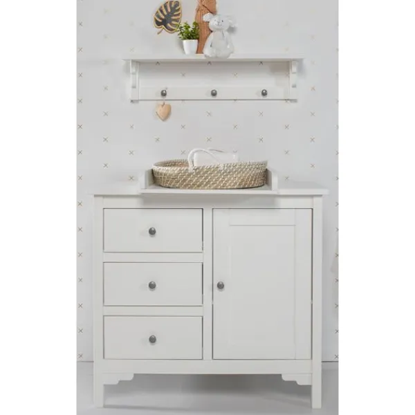 Met de praktische commode ben je volledig voorbereid op het verschonen van je kindje. De commode beschikt over 3 laden en 1 deur (met 1 legplank) waarin je heel wat spulletjes kwijt kunt.
