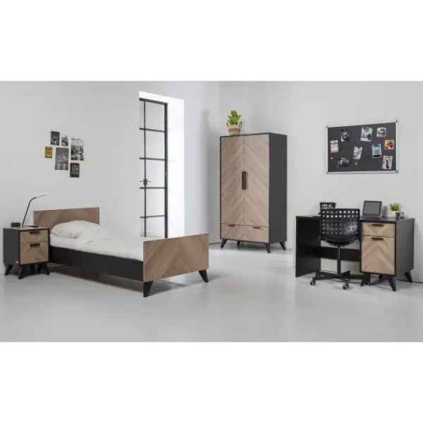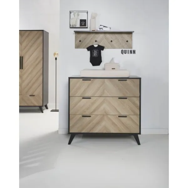 Babykamer Lancaster van het merk Interbaby is een echte eye catcher! Deze stoere kamer combineert een visgraatmotief met zwarte houten poten. Met deze warme, moderne babykamer zit je helemaal goed!
