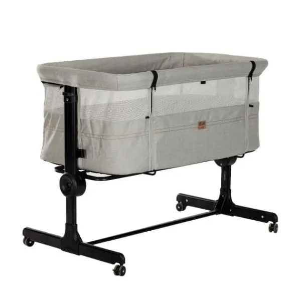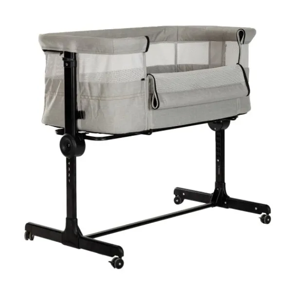 Deze mobiele wieg heeft een stevig frame met wielen (incl. rem) en is in 7 verschillende hoogtes verstelbaar, zodat het naast ieder ouderbed pas. Ook kan de wieg in een (licht)schuine positie geplaatst worden, dit vermindert allerlei babykwaaltjes, waaronder symptomen van een moeilijke spijsvertering doordat de zwaartekracht de inhoud van het maagje beneden houdt. Ook bij krampjes wordt de druk op het maagje verlicht.