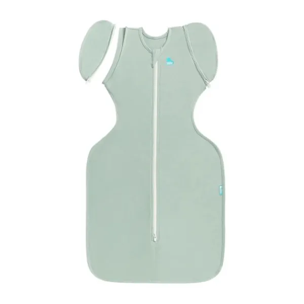De Love To Dream Transition Bag Inbakerslaapzak – Fase 2 – Maat M – Olive helpt je baby soepel overstappen van inbakeren naar zelfstandig slapen. Dankzij de afritsbare mouwen kun je het proces geleidelijk laten verlopen: eerst één armpje vrij, daarna beide. Zo blijft je kindje zich geborgen voelen, terwijl het leert om vrij te slapen.