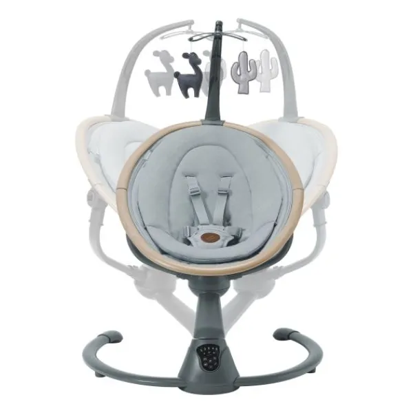 Dankzij de 360° draaibare zitting heb je altijd zicht op je kindje, waar je ook bent in de kamer. De Cassia beschikt over vijf schommelsnelheden, twee ruststanden en twaalf rustgevende geluiden. Zo creëer je in een handomdraai een kalme, vertrouwde omgeving. De swing is licht van gewicht en gemakkelijk te verplaatsen.
